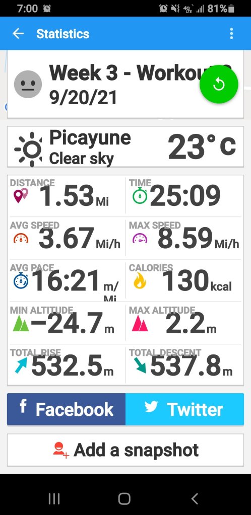 One thing that I notice while running with her was that I had to slow my pace down. She is little so going slow was good. It was just funny because I realized that when I run by myself; I somehow compete and try to beat my times. This made me realize that I may be having issues when I run because I push myself too much. So tomorrow I am going to head for week 4 day 1 and run those 5 minute runs and see how it is with a little slower pace.