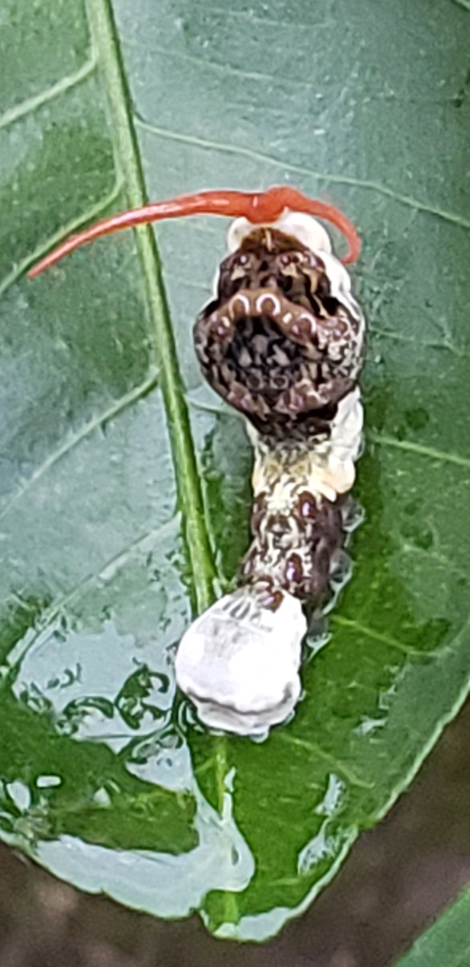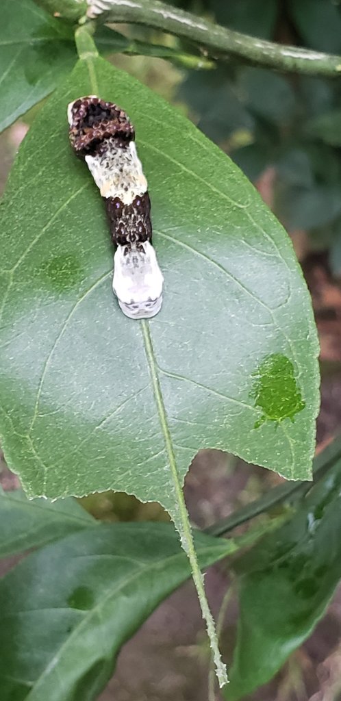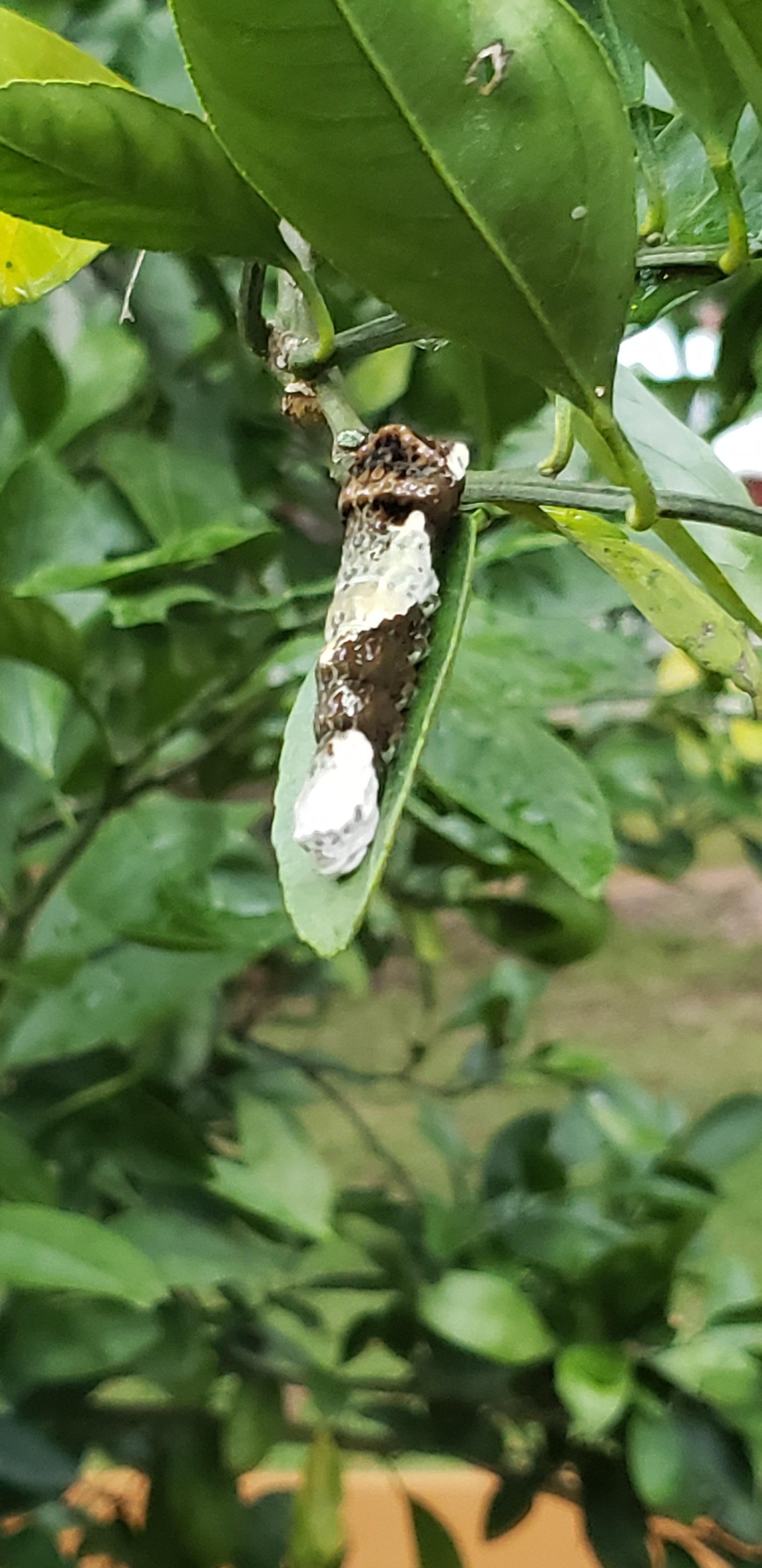A couple days ago we found some caterpillar’s. I literally had to take another leaf and poke it a little to see if it was in fact a caterpiller that looked like bird poop (hence the reason I poked it with a leaf, rather than my finger). They are enjoying a bite to eat on an orange tree.