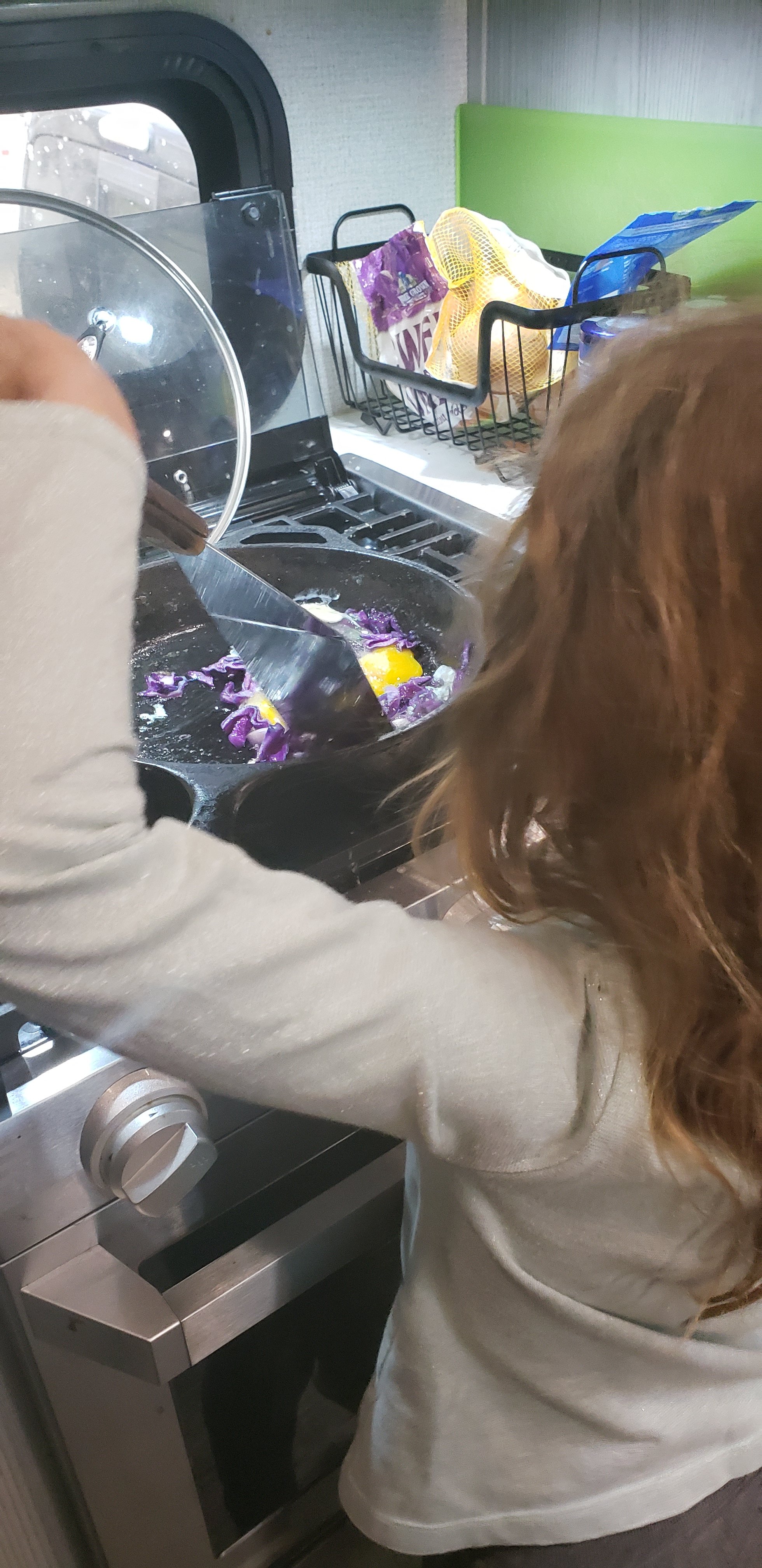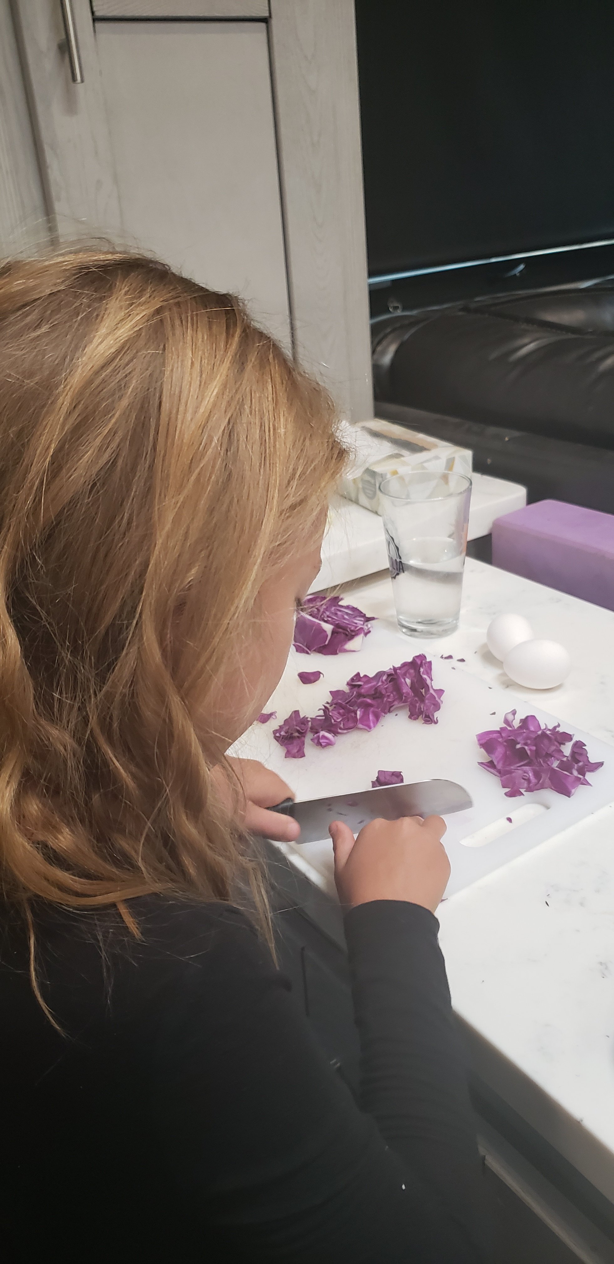Yesterday I had all three of my kids make their own breakfast! I had out purple cabbage eggs and cheese. I left Lucas on his own to make his so no pictures!