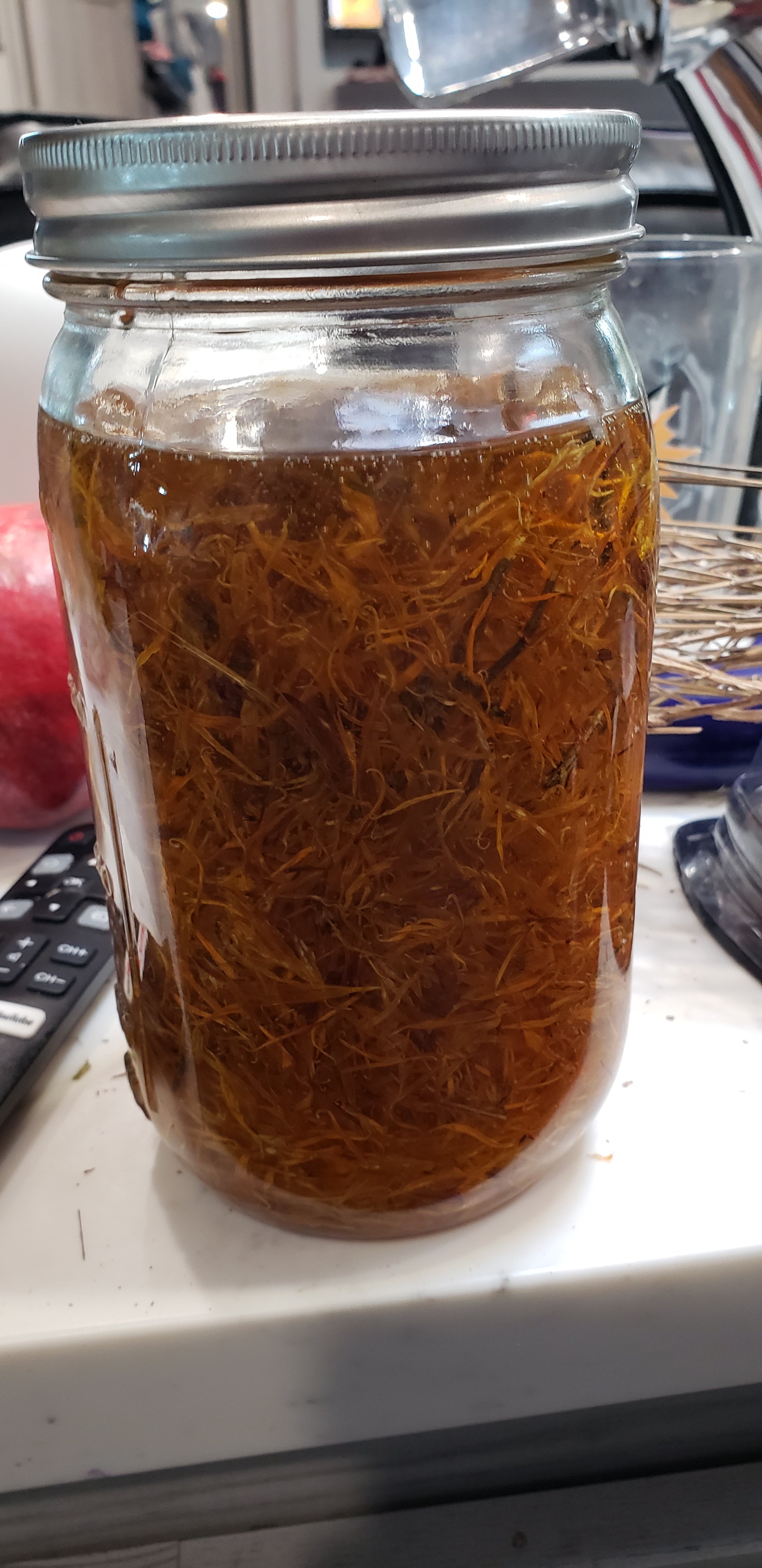 I am making an oil infusion of dried Calendula and lavender! I am using Refined and Unrefined avocado oil! I am hoping to learn how to make a soothing lotion!