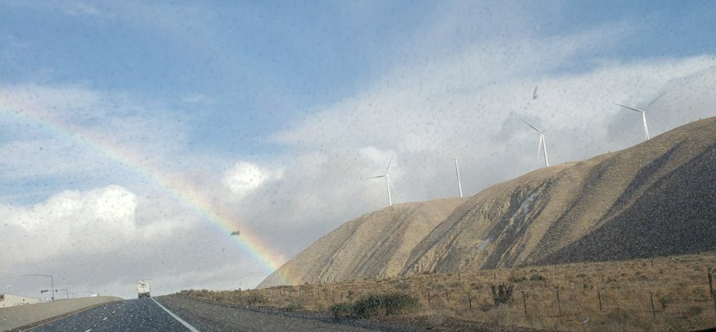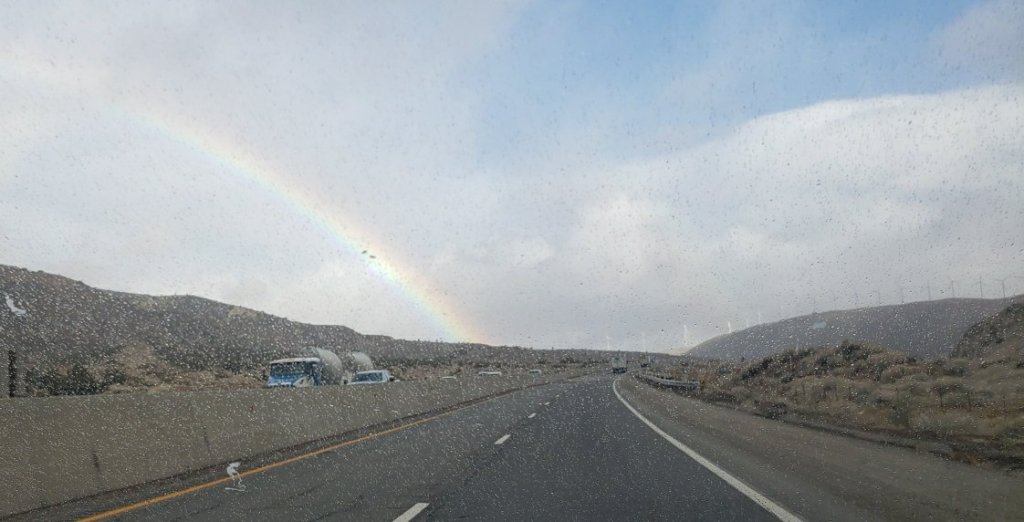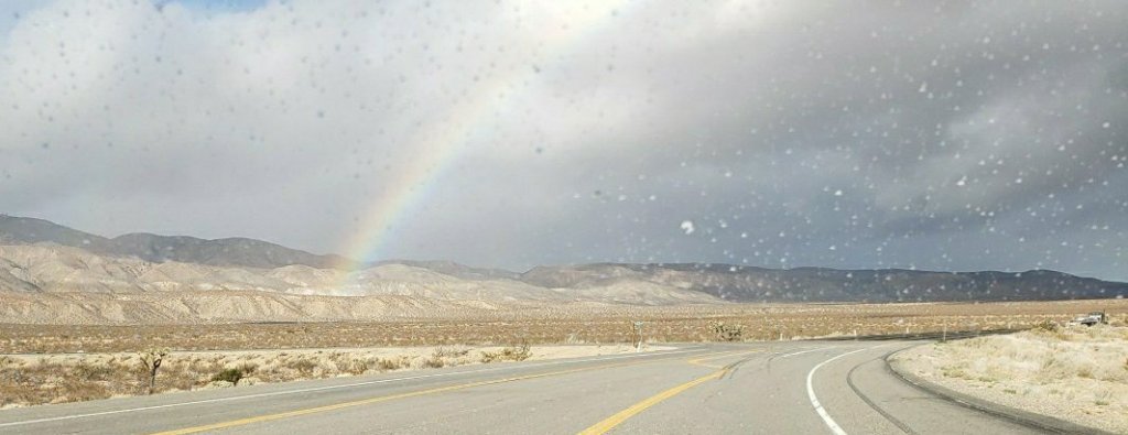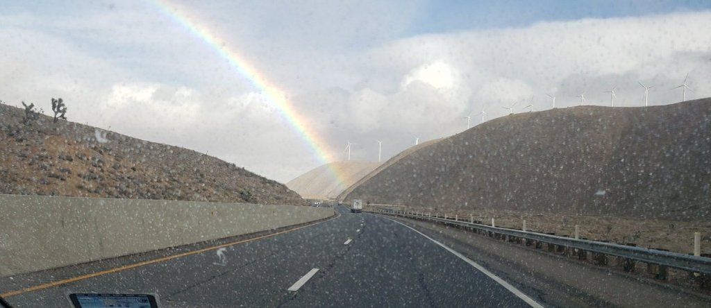 On our way back to Mojave there was a rainbow. I could not resist having my son take some pictures of it while I was driving.
