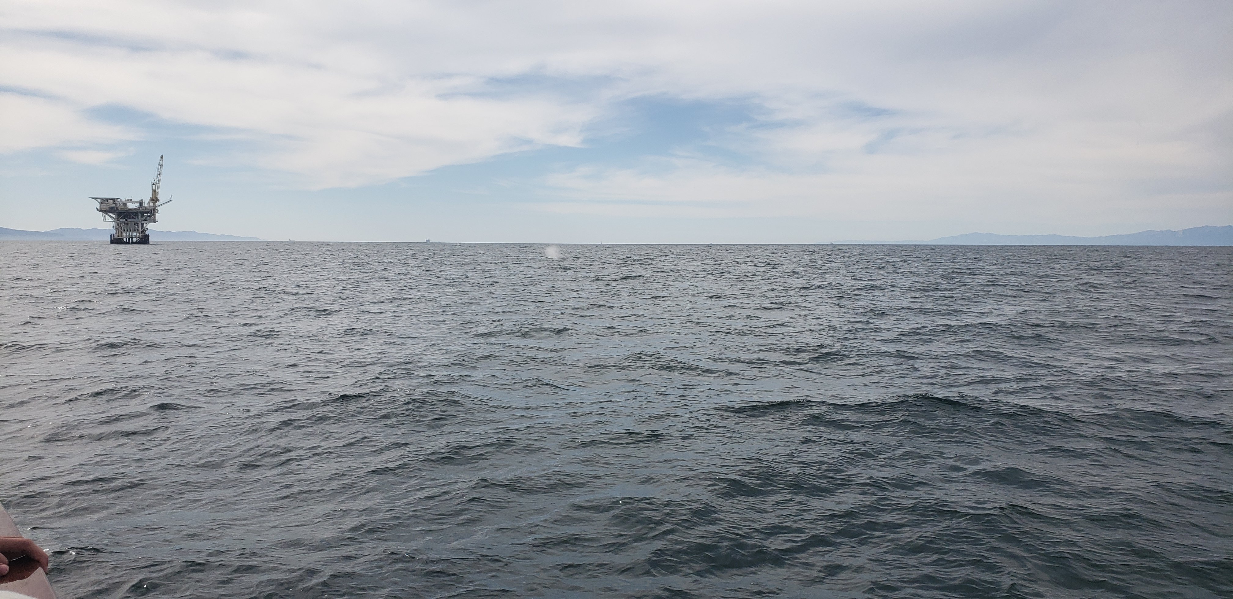 I was a very happy lady grinning from ear to ear when I spotted the whales. Below is a picture of a whale blowing water out of its blow hole. You may have to zoom in if you are reading this on your phone.