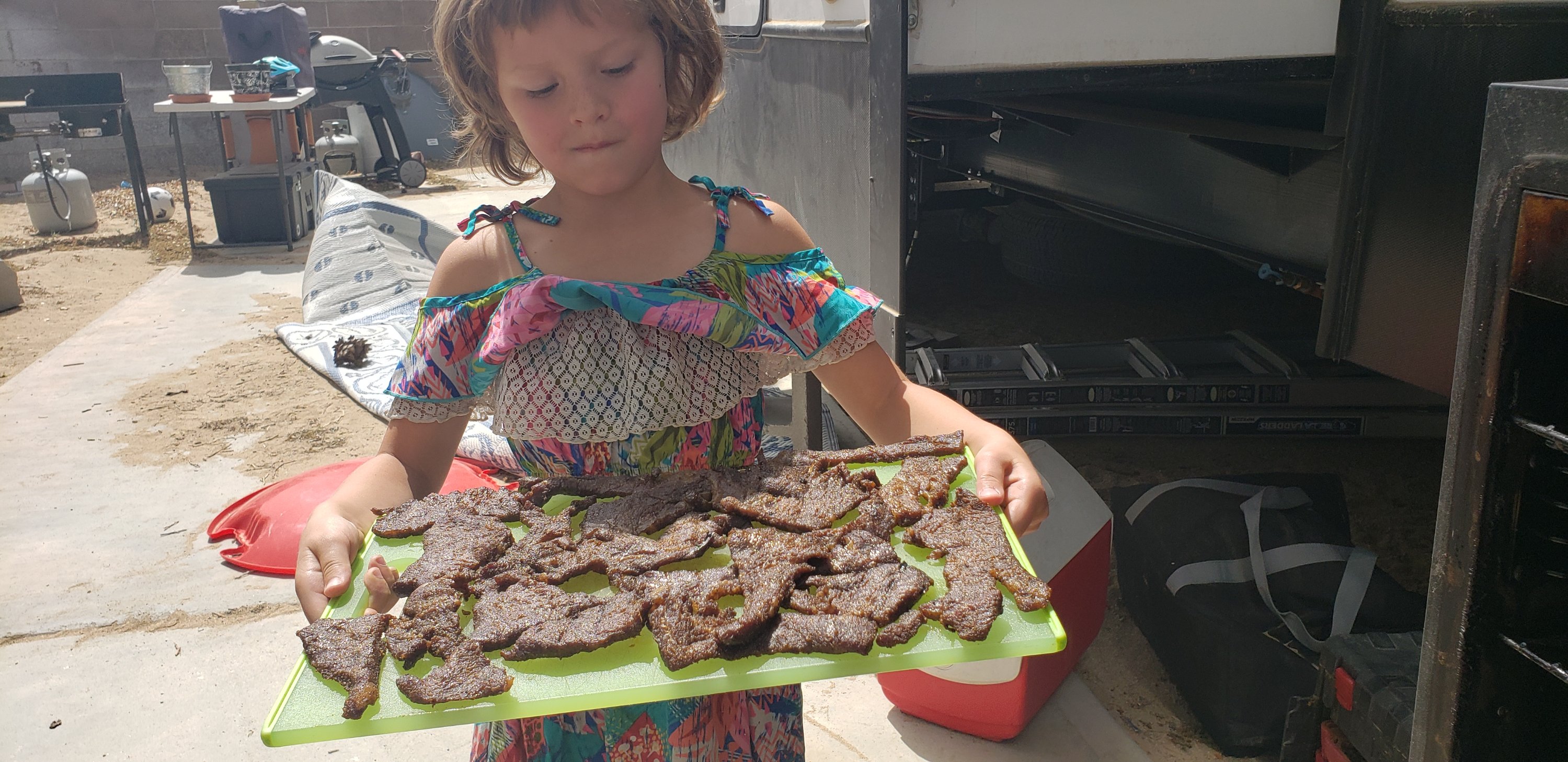 We made beef jerky today! This is our first time making jerky and it did not come out so bad. I made some of the cuts too thick which is making them a little chewy. The next time I will make sure we cut it thinner!