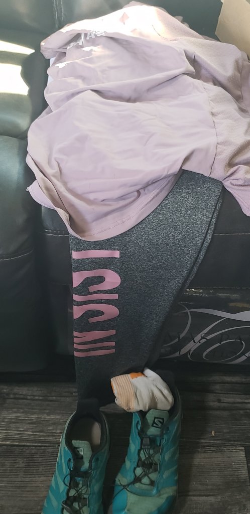 So last night I laid out my workout clothing on the couch to help motivate myself into running. Well it worked but it took up until noon to actually go and run.