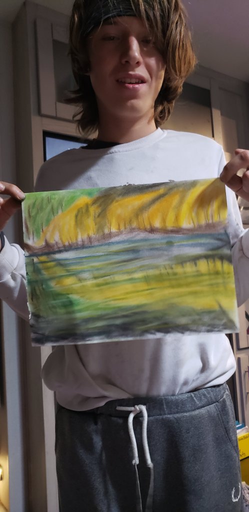 My son has been exploring soft pastel art. I am impressed with how he can take a blank page and just create what he sees in his head. It has been quite the journey to have him explore different art styles other than drawing out androids. Below are a couple of pieces he created.