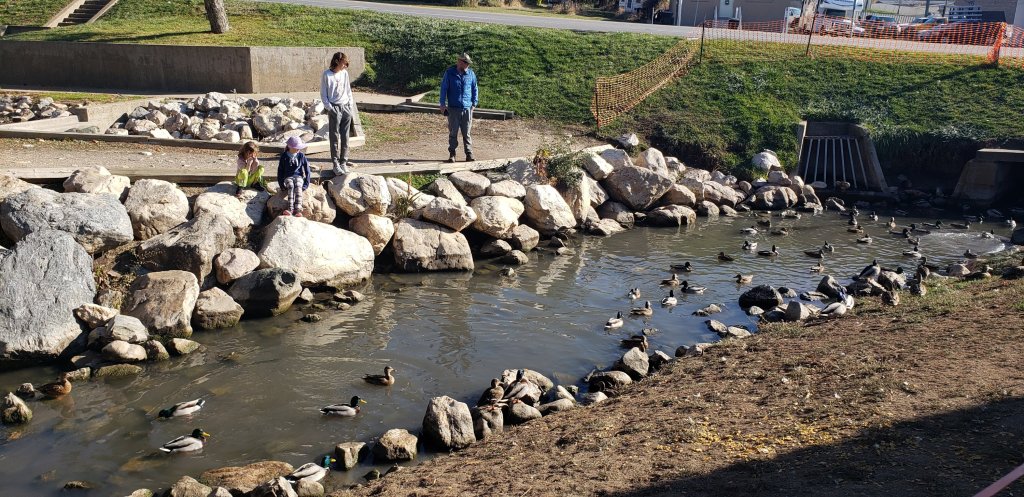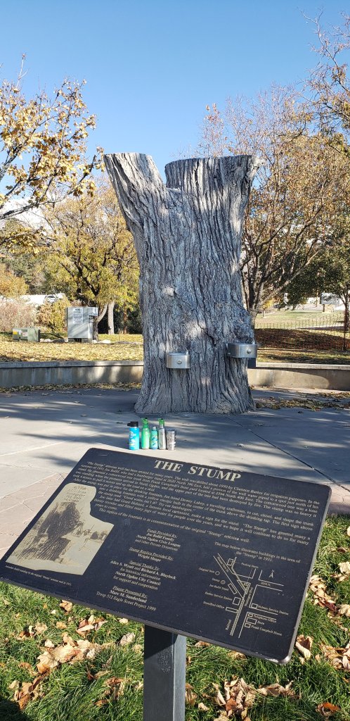 The next day we headed to North Ogden to “The Stump”. This stump provides spring water that anyone can stop by and fill up their canteens with fresh water. The water fountain at this time was shut off for winter but just a short walk to the left will bring you to where the water runs freely from some pipes coming out of the ground. A short walk to the right will bring you to a little man made river where a flock of ducks were swimming and fishing.