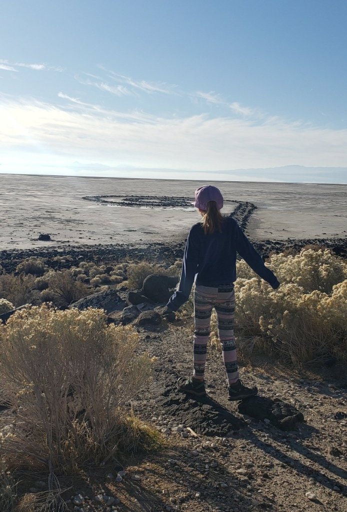 Leaving the visitors center we took a right to head to see the “Spiral Jetty”. ” Spiral Jetty” was created by a man named Robert Smithson. Smithson created this jetty in 1970 the materials he used were basalt rock, salt, and dirt. He made this spiral twice because the first one turned out to look more like a “j” instead of a spiral.