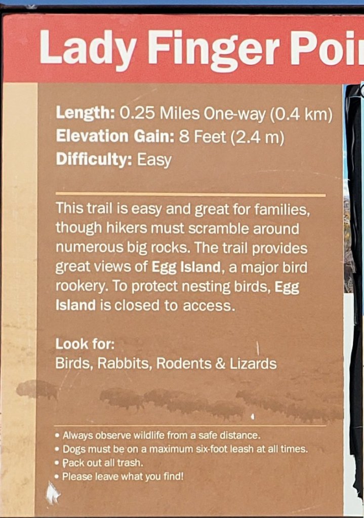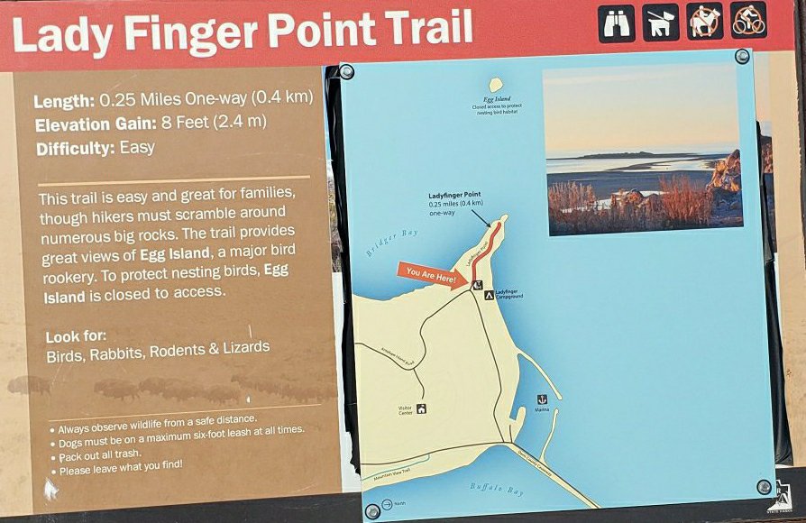 Of course, the first thing is pictures by the park signs and the restroom was the second stop for me. Back in the car, we stopped at “Lady Finger Point Trail” and took a short stroll down the path. The park has multiple boards along the path to teach about the lake and what thrives in it. While strolling we looked out at the lake bed and discovered coyotes running along the water’s edge.