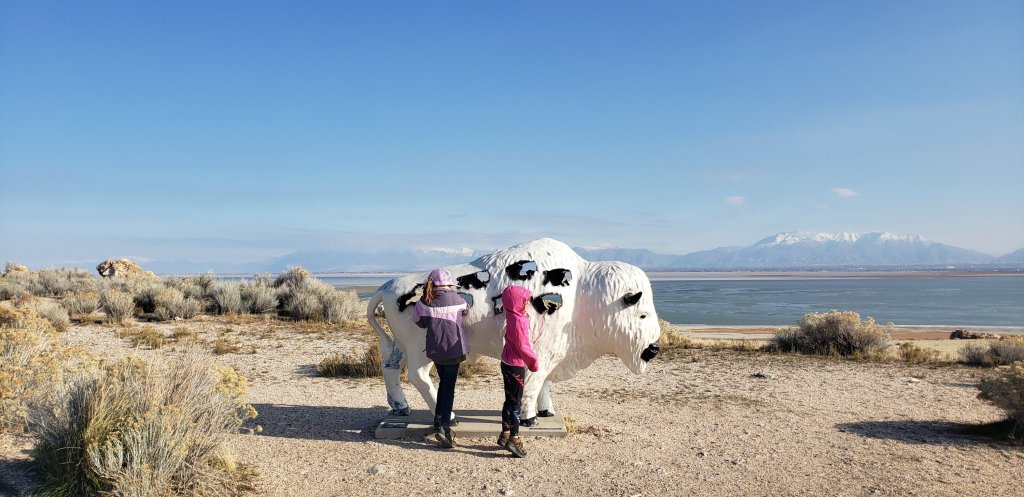 After taking a quick hike were on our way to the visitor’s center. Upon reaching the parking lot we noticed a white bison sculpture we just had to observe up close.
