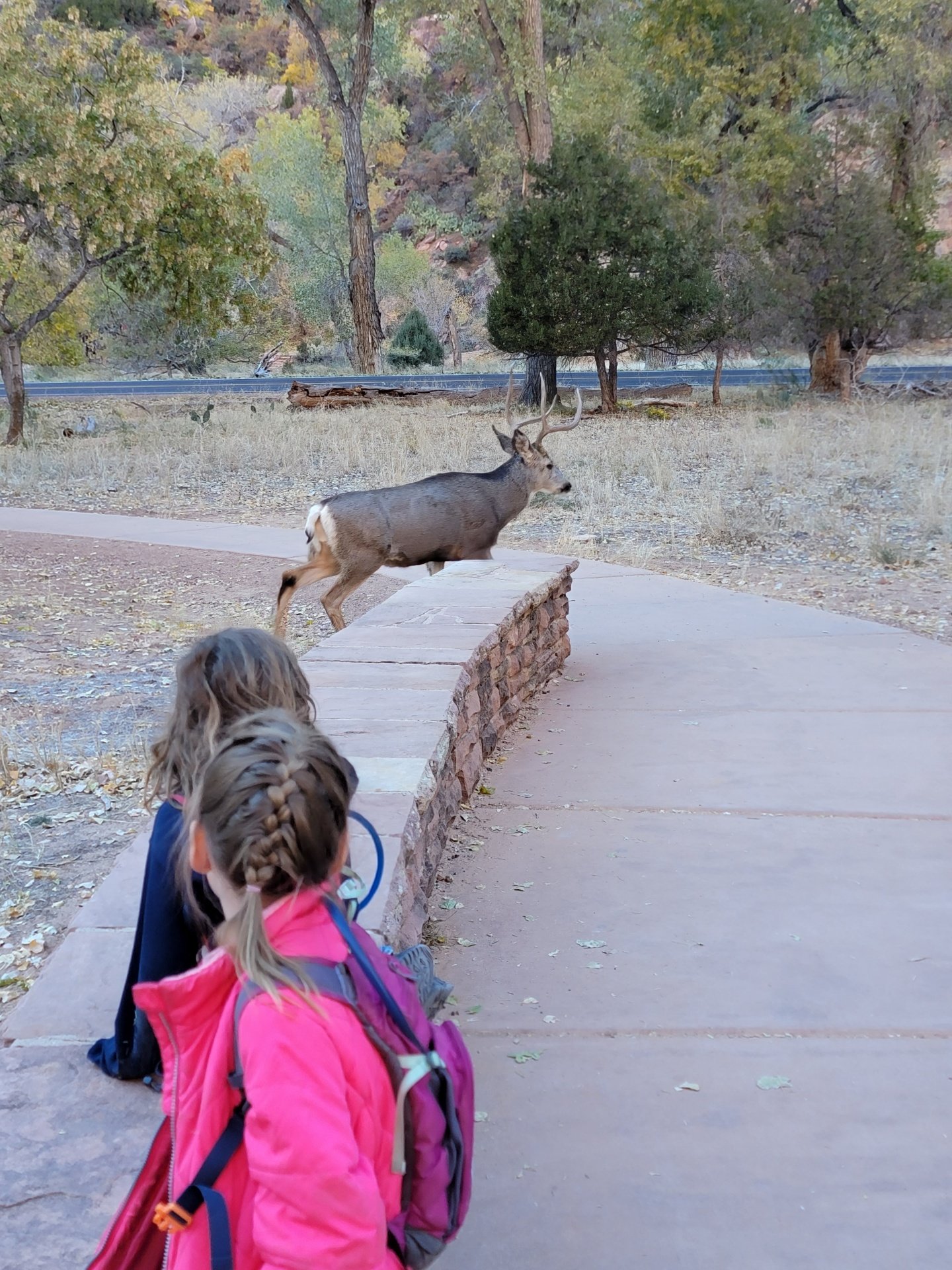 Below are some pictures at the lodge of a mule deer walking by the kids while they sat and waited for him to go by. I was pretty impressed that all the kids talked quietly and moved slowly the whole time they observed it.