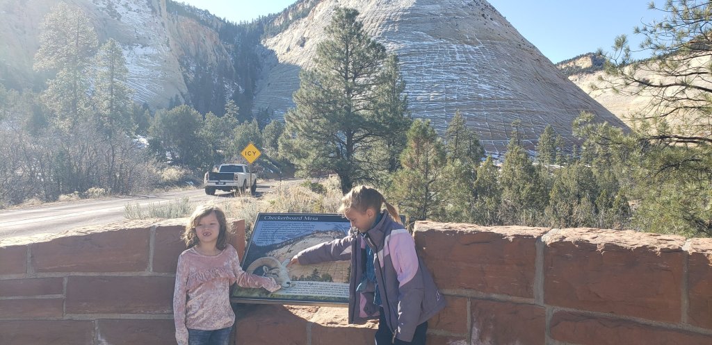 Sunday came and it was off we went to Zion National Park to do some hiking. We Entered Zion through the east entrance and came upon the Checkerboard Mesa. This Mesa received its name from the many visible vertical and horizontal lines carved into the cliff.