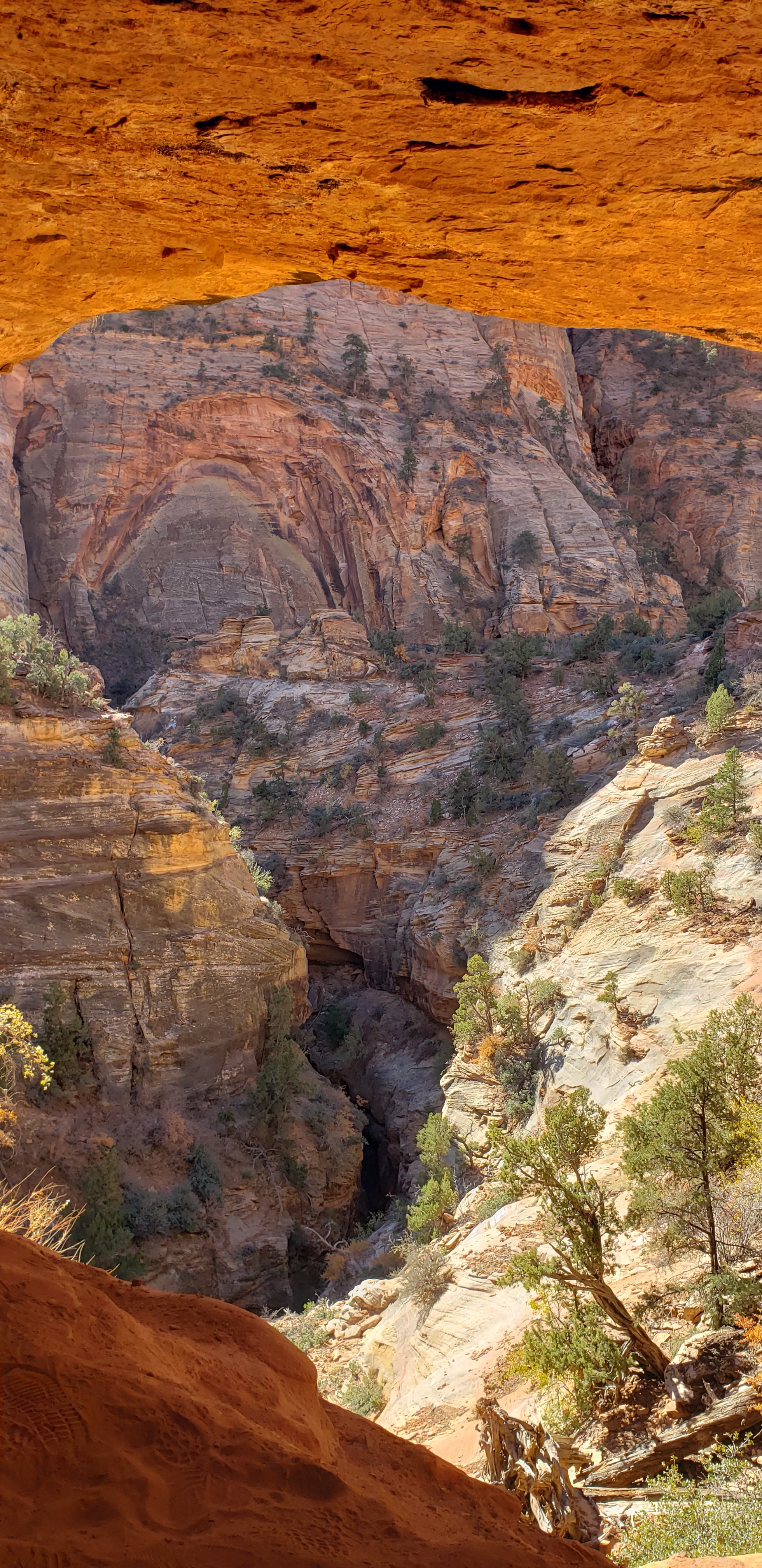 The next day came and we went back to Zion to do a little more exploration around Checkerboard Mesa to find a hidden Arch. We, unfortunately, did not find it. Then we made our way to lower pine creek waterfalls trailhead. This was a fairly easy hike that brought us to a point where we had to start climbing to the waterfall.