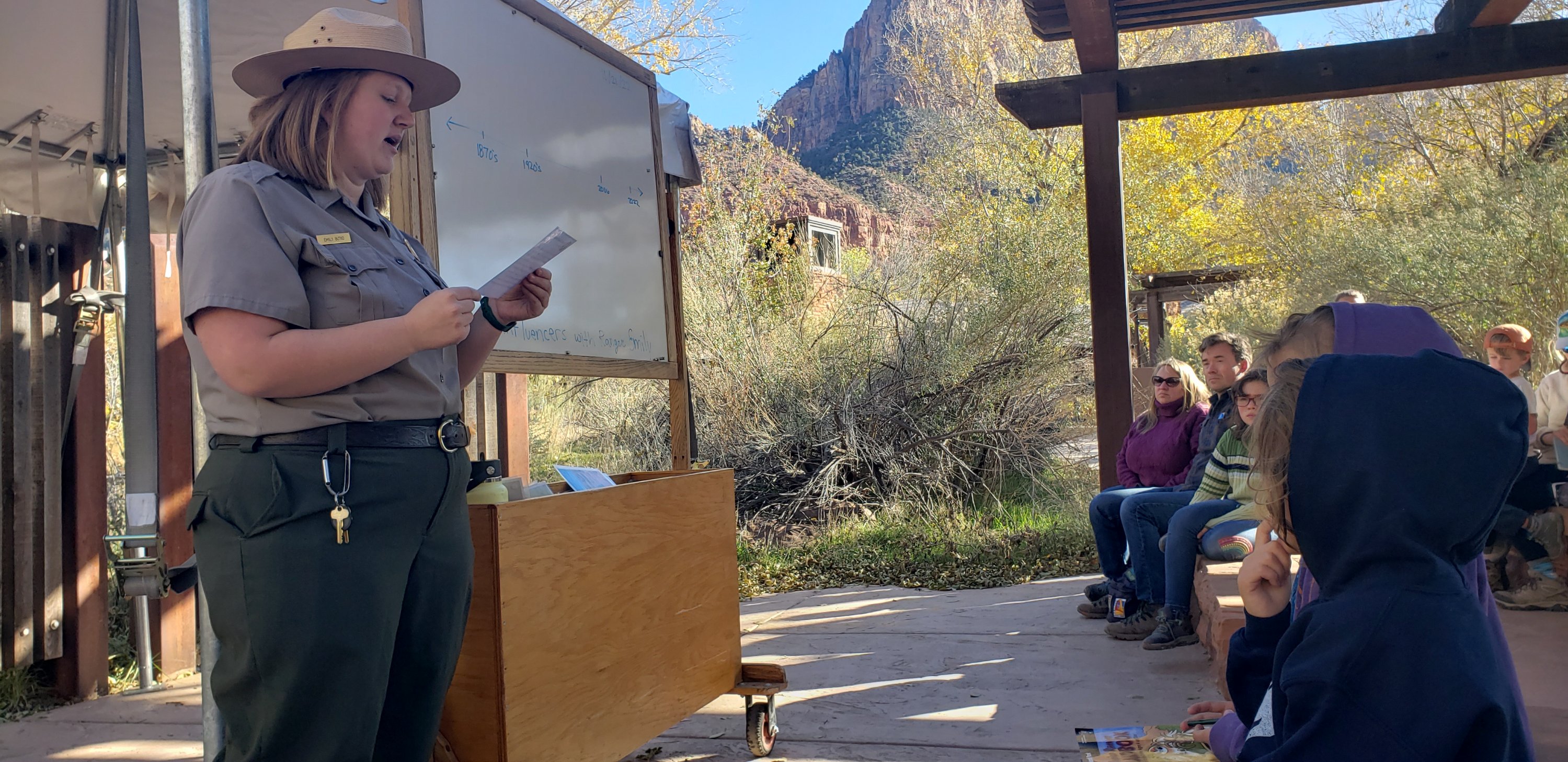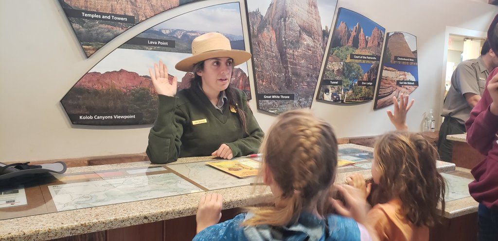 To the visitors center, we went for a junior ranger-led class to learn about the early influencers of zion. We learned that six ladies from a university went there to explore and had photographers follow them around to document all that they did. These ladies also opened Utah’s first (zion) national park in the year 1919.
