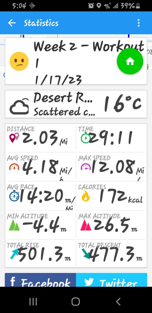 My kid was able to speedwalk next to me. I was like what the heck you can start running with your father. Anyways below are my results my lesson this week is to not run with my long-legged son again until after I can keep up.