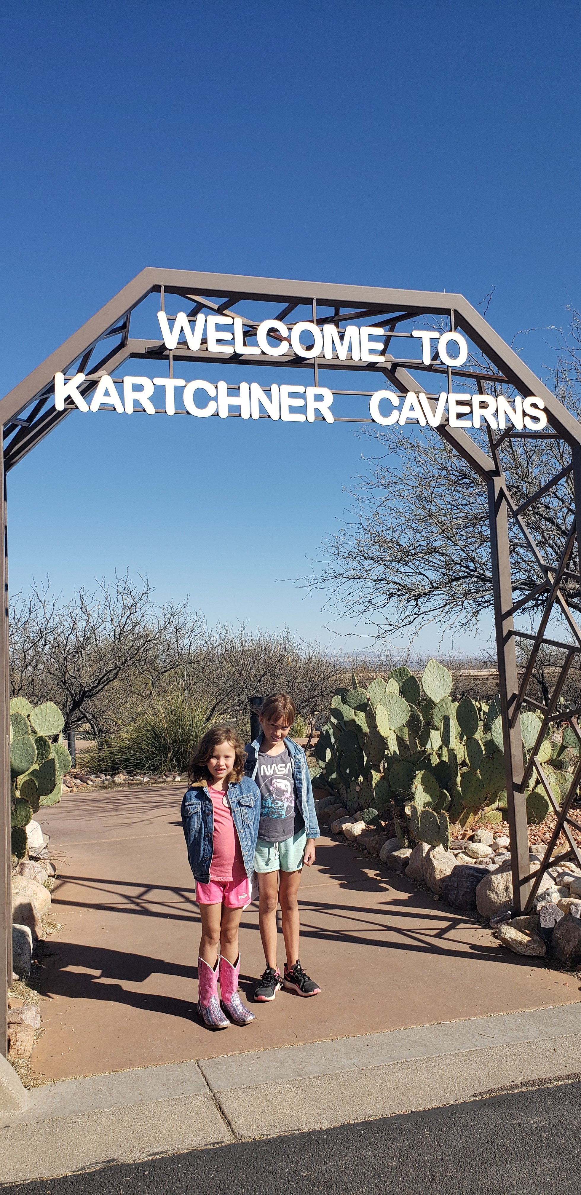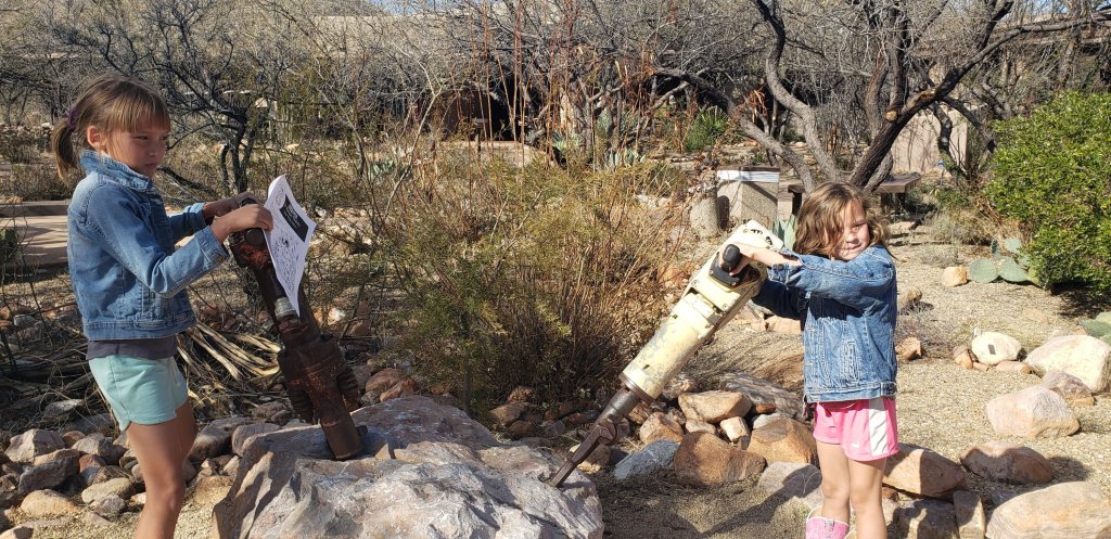 Even though we could not take any pictures of the inside that did not prevent us from having a photo shoot outside. So below is a picture of my girls having fun posing with statues of equipment. Below is a link to Kartchner Caverns.