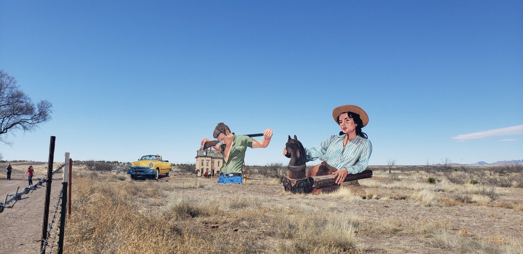 On our way to a town just outside of Big Bend National Park in Texas, we made a quick stop to check out the Marfa Mural. While we were stopped, my son helped me get lunch together. Meanwhile, the girls hopped out of the van and danced to the music that was playing. Below are pictures of the mural.