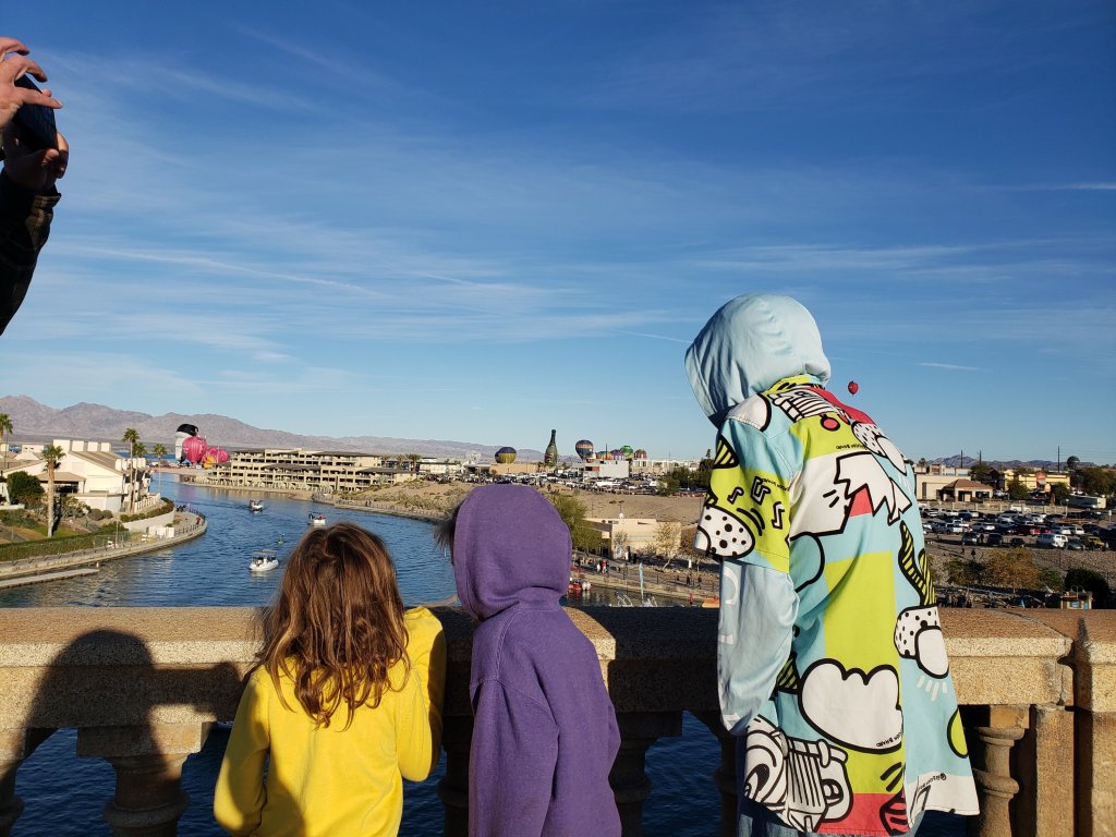 In January 2023, we woke the kids up at 5:30 am and took them to Lake Havasu. The multi-balloon take-off was supposed to happen at 7:45 am and we wanted to be on time to see it. We had many questions about where are we going. And, why is it so early? And many more. To our surprise, the kids stayed awake for the whole hour’s ride to the lake. We were expecting them to fall back asleep.