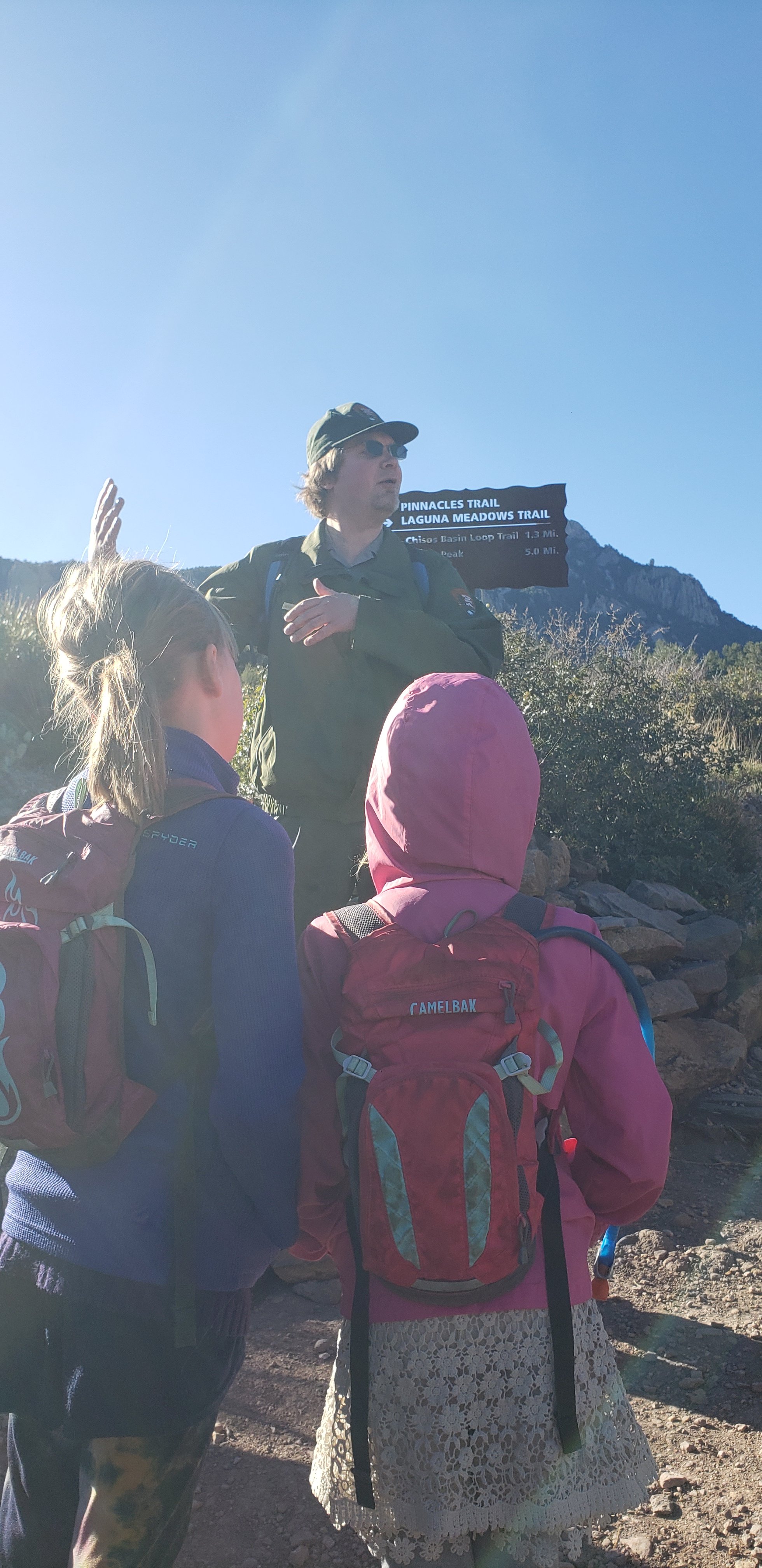 On Tuesday we were out the door by 8:00 am again to join ranger Ben at the Basin loop trail. This trail is located in the Chisos Mountains. Ranger Ben discussed ethnobotany and how the trails were made. He also discussed the people that lived at Big Bend before it became a national park. This lesson took an hour and a half of hiking and learning. The girls loved this hike one because everyone in the group let them walk with the ranger and two they had lots of questions that they asked as we walked.