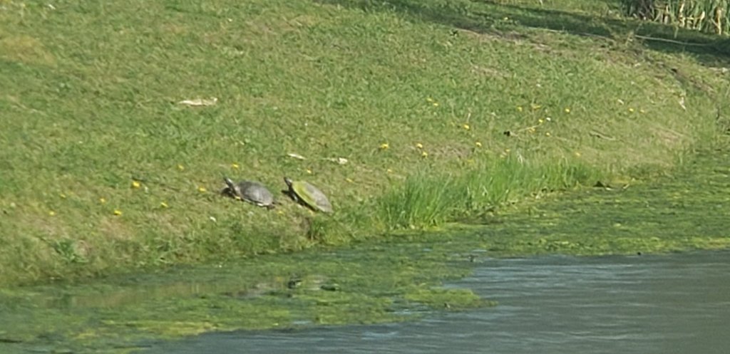 This bunch would not allow us to get close enough to them to observe their shape, size, color, or patterns on the shells but I am glad we were able to sit still and quiet enough for them to sun themselves again.