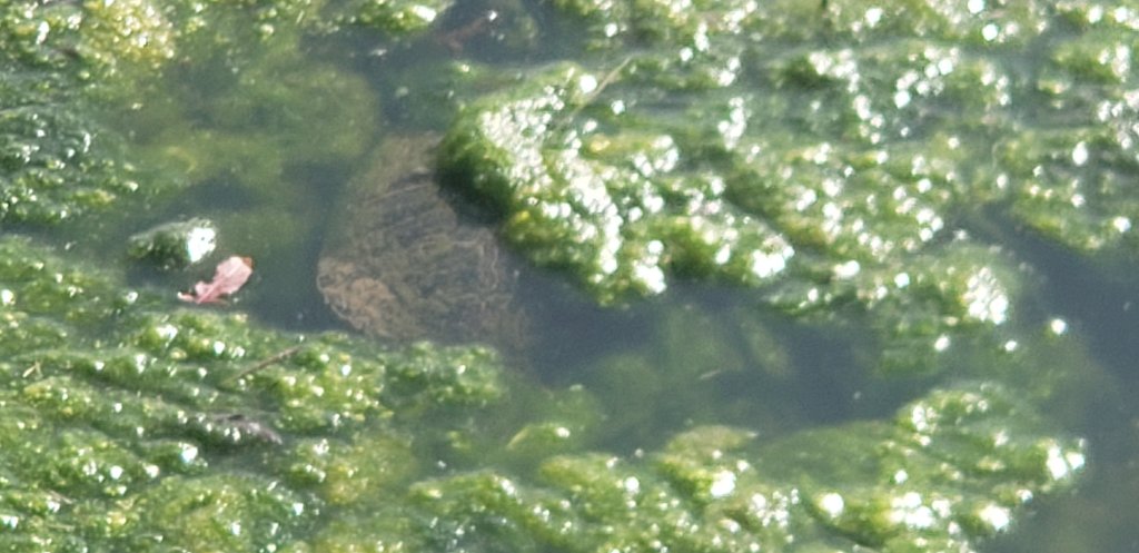 Coming upon the bench I had the kids sit down as quietly as can be and told them to sit as still as possible. Eventually, the bale of turtles deemed it quite enough to come back out of the water.